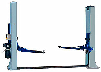 雙柱式舉升機(jī)屬于一種特殊液壓升降機(jī),有對稱式和非對稱式兩種。對稱式舉升機(jī)四根臂的臂長大致相等,這樣使得汽車中心(或質(zhì)心)處于立柱的中間位置,對于皮卡和箱式貨車等類型的汽車的日常維修來說這種對稱式舉升機(jī)可能是很好的選擇。但是對于一些柱間寬度不夠大的對稱式雙柱式舉升機(jī)來說,汽車舉升后不能打開車門是一個(gè)很大的缺點(diǎn)。非對稱式舉升機(jī)的立柱向后旋轉(zhuǎn)了一個(gè)角度(大約30°),并且前臂比后臂稍微短一些。當(dāng)把汽車停放到這種非對稱式的舉升機(jī)適當(dāng)位置時(shí),車的位置就向后移動了一些,因此,我們就很容易地從車門進(jìn)出。而且,這種非對稱式舉升機(jī)轉(zhuǎn)動的立柱,可以確保車輛的重心安全地定位在立柱之間。