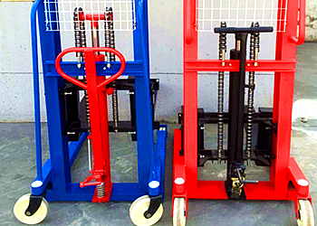 手動(dòng)液壓堆垛車屬于一款特殊液壓升降機(jī),由液壓系統(tǒng)、門架和貨叉三部分組成。