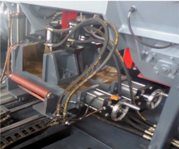 鋸床主要部件有:底坐、床身、立柱、鋸梁和傳動(dòng)機(jī)構(gòu)、導(dǎo)向裝置、工件夾緊、張緊裝置、送料架、液壓傳動(dòng)系統(tǒng)、電氣控制系統(tǒng)、潤(rùn)滑及冷卻系統(tǒng)。其操作簡(jiǎn)單耐用,液壓系統(tǒng)和減速機(jī)均選用優(yōu)質(zhì)廠家提供,質(zhì)量穩(wěn)定。切削速度液壓控制,無(wú)極調(diào)速,方便快速。雙立柱結(jié)構(gòu),垂直升降,穩(wěn)定性高。可根據(jù)用戶要求自行設(shè)定任意旋轉(zhuǎn)角度,可調(diào)角度在0°—45°/60°左右,操作簡(jiǎn)單。鋸床工件加緊為液壓加緊,一鍵式加緊手柄操作方便快捷。