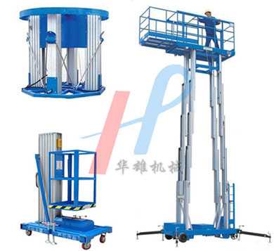 單桅鋁合金升降機是由單桅柱支撐作業(yè)平臺,是起初出現(xiàn)的鋁合金升降機。具有升降平衡,操作方便等優(yōu)點能,可隨意進出電梯且耗電少、無污染、工作時不傷 地面,可用于貼墻工作及探出作業(yè),工作無死角等優(yōu)點。雙桅鋁合金升降機整體采用高強度鋁型材精制而成由于型材強度高,使升降臺的偏轉(zhuǎn)與擺動極小。采用雙桅柱式結(jié)構(gòu),載重量大,平臺面積大,穩(wěn)定性極好,運轉(zhuǎn)靈活,推行方便。 三桅鋁合金升降機由三組桅柱支撐作業(yè)平臺同步升降,支腿結(jié)構(gòu)同單桅柱式平臺,具有超大的載重量和優(yōu)秀的工作穩(wěn)定性。四桅鋁合金升降機整體采用高強度鋁型材精制而成由于型材強度高,采用四桅柱式結(jié)構(gòu),穩(wěn)定性極好,運轉(zhuǎn)靈活,載重量大,平臺面積大,推行更方便。